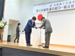 6/14 大東市優良従業員表彰に従業員3名が選ばれました。