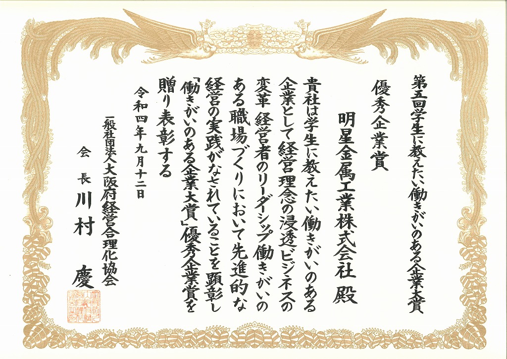 9/12 第5回「学生に教えたい働きがいのある企業大賞」を受賞しました