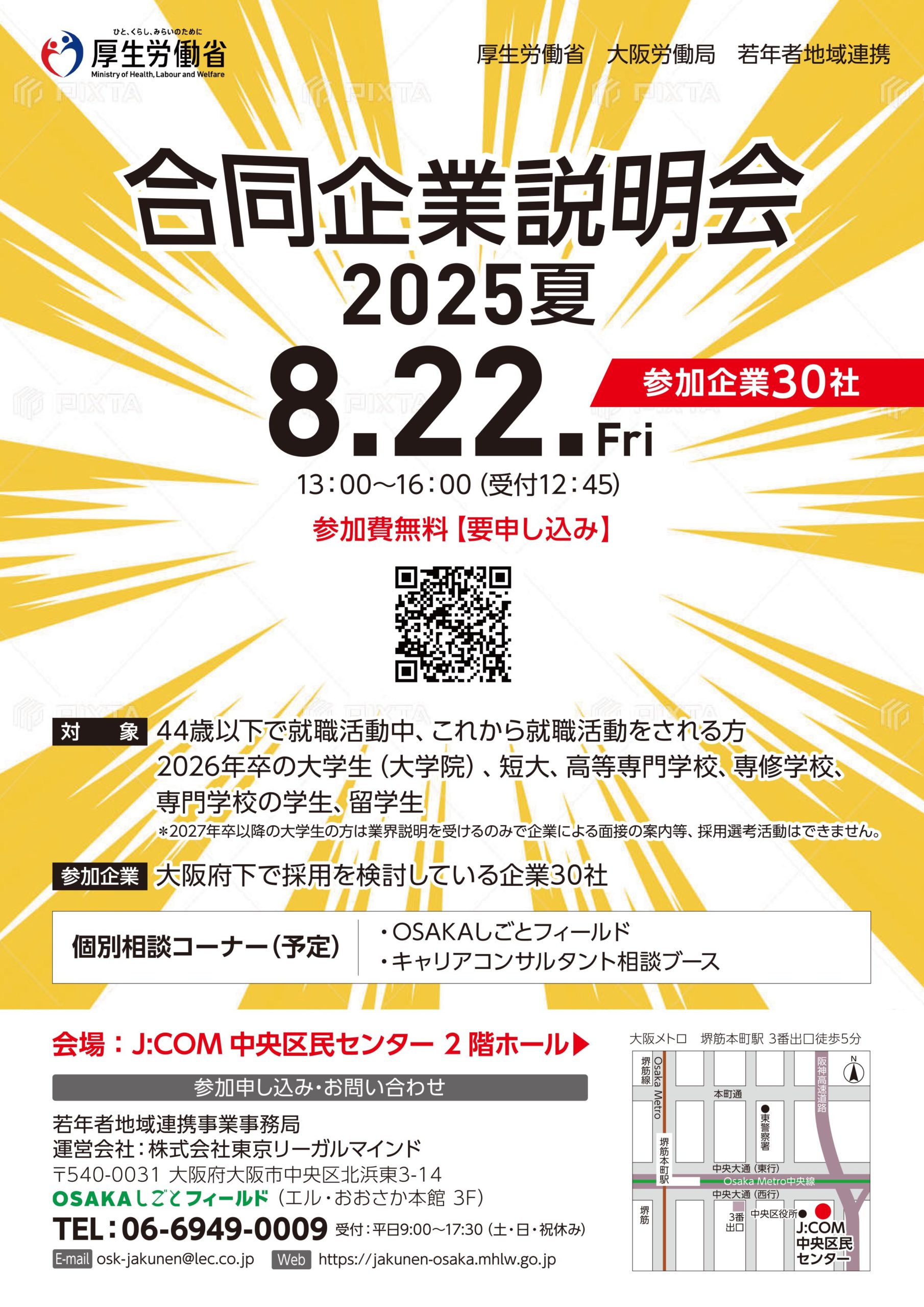 2025年8月18日 / 最終更新日時 : 2025年8月18日 MeiseiSU ニュース 8/22 合同企業説明会2025夏に参加します 明星金属工業株式会社は、8/22(金)合同企業説明会2025夏に参加します。 求職者の方は是非ともご参加ください。 参加費用は無料です。事前登録要。 共有: X で共有 (新しいウィンドウで開きます) X Facebook で共有 (新しいウィンドウで開きます) Facebook いいね:いいね 読み込み中… 関連